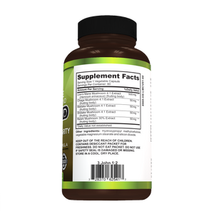 Lion’s Mane Mushroom (Hericium Erinaceus), Chaga Mushroom Extract (Inonotus Obliquus), Maitake Mushroom Extract (Grifola Frondosa), Shiitake Mushroom Extract (Lentinula Edodes), and Reishi Mushroom Extract (Lingzhi Mushroom). Vegitable capsule made from Hydroxypropyl Methylcellulose, Vegetable Magnesium Stearate, and Silicon Dioxide.